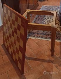 Vendo tavolo scacchiera in legno fatto a mano misure 85x85 h 64 con l'aggiunta dei piedini in foto diventa alto 72 cm.Ritiro a mano prezzo leggermente trattabile