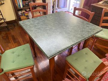 Tavolo in legno Scavolini Carol verde/ciliegio 90x90 allungabile 90x180, con 8 sedie in legno. Ritiro a cura acquirente