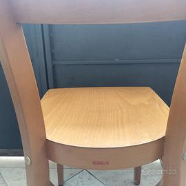 Tavolo in legno color noce e panca angolare Scavolini munita di cassetti sotto seduta e tre sedie Scavolini in legno massello.
