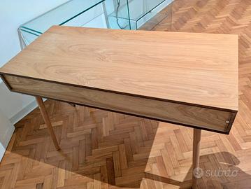 Tavolo scandinavo alto con due cassettini. Misure: 120x55x78h
