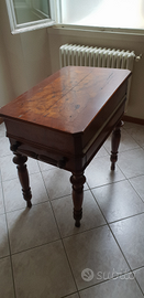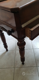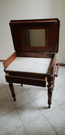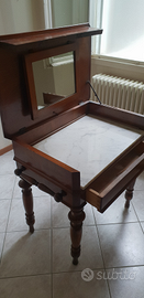 Vendo antico tavolo - scrittoio petineuse fine 800 con specchio. Piano tavolo in radica noce. Piano toilette in marmo bianco di Carrara. Altezza da chiuso cm 80 Larghezza cm 78 Cassetto altezza 10 cm Ottime condizioni ma necessità di restauro