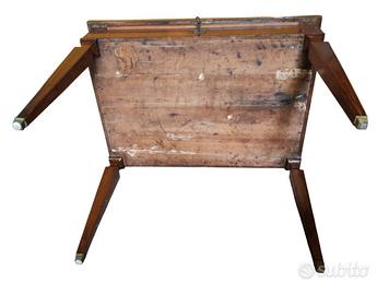 Mobile versatile e corposo, caratterizzato da una particolare costruzione con piano scorrevole che cela all’interno vani a tempietto e cassetto, soluzione funzionale tipica degli scrittoi di pregio dell’epoca.