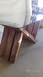 Tavolo scrivania 160x80 cm. cristallo travi legno