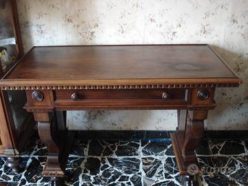 TAVOLO SCRIVANIA ANTICO IN NOCE MASSELLO.