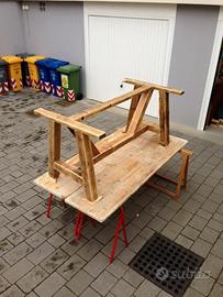 Interamente fatto a mano con incastri tenone e mortasa. Piano in vetro misure 90x180. Telaio in morali di legno da cm 9. Ideale per otto persone se usato come tavolo pranzo, oppure ampio piano se usato come scrivania
