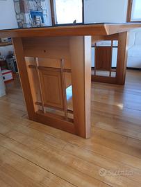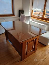 Tavolo marchio Fattori in noce con rivestimento del piano in vetro misure del piano cm 150 x 89. Contatto tramite WhatsApp al n. 327 8183886