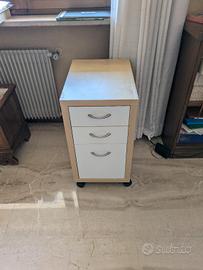 Tavolo scrivania marca Ikea con cassettiera in buono stato. Presenta alcuni segni di usura come da foto