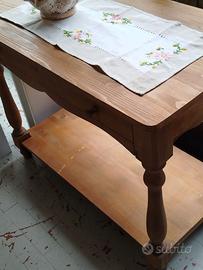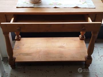 Tavolo scrivania in legno di abete con cassetto