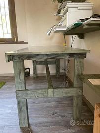 Tavolo / Scrivania in pino Misure 180x70 cm Colore verde vintage Sfruttabile in casa come tavolo da pranzo o scrivania, ma anche sotto un portico nella bella stagione Realizzato artigianalmente