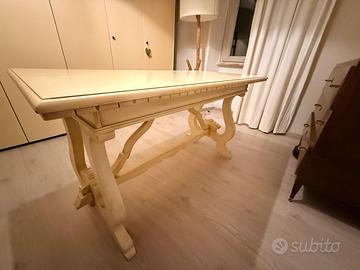 Vendo tavolo in stile classico color avorio panna, dalle linee eleganti e con gambe sagomate importanti, molto decorativo e adatto sia come scrivania che come tavolo da lavoro o da studio.