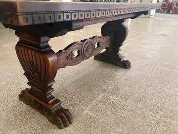 Tavolo scrivania metà XX secolo stile rinascimento - Misure cm, 90x180 altezza cm.80