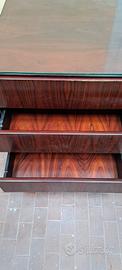 Vendo tavolo/scrivania di modernariato anni 70 in ottime condizioni, impiallacciato in palissandro, dimensioni 210x100 con vetro in appoggio perfetto a parte una piccola sbeccatura su un lato