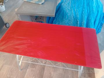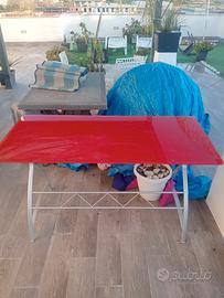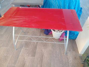 Si può usare sia come "Tavolo" che come "Scrivania". Cristallo e acciaio. Misure: L 1,64cm/ P 64cm/ H 74cm.