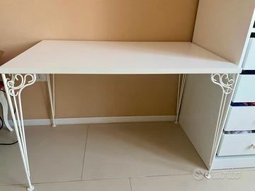 Tavolo scrivania shabby chic provenzale con gambe in ferro battuto. misura 110 x 65 cm presente qualche difetto come in foto. leggero da trasportare