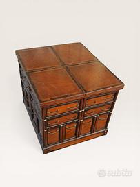 Tavolo /Scrivania Trasformabile In Cubo - Design e Architettura- Legno Pregiato. Il cubo che diventa tavolo Un vero capolavoro di ingegneria e design: un tavolo trasformabile a scomparsa, ideale per chi cerca un pezzo d’arredamento versatile, funzionale e di grande impatto estetico. Questo tavolo non è solo un mobile, ma una soluzione salvaspazio intelligente. Da chiuso, si presenta come un elegante baule utilizzabile come tavolo da caffè completamente chiuso , oppure aprendo le alette aumentando il volume sa piacimento dotato di cassetti dalle linee classiche, perfetto come mobile d’ingresso o base decorativa. Grazie a un sofisticato meccanismo di sollevamento assistito, il piano si apre e si estende lateralmente, trasformandosi in pochi secondi in un ampio tavolo da pranzo o da lavoro. Caratteristiche Principali: • Design Unico: Estetica vintage con finiture in legno calde e dettagli curati (pomelli in ottone, venature a vista). • Meccanismo Avanzato: Il sistema a pantografo permette una transizione fluida tra le modalità “chiuso” e “aperto”. Legno massello , ottime condizioni 1 ) Tavolino da caffè Posizione senza apertura alette Misure L70 cm P60 cm H54 Con apertura alette Misure L70 cm P120 cm H54 2)Tavolo Misure L170 cm P120 cm H 78 cm Le due prolunghe vengono posizionate una volta chiuso all’interno di un vano sottostante con apertura a ribalta . Spedizione su Pallet