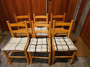 Vendo per cambio arredamento tavolo legno massello 6 sedie (di cui una da rimpagliare) 4 comodini 1 appendiabiti Il tutto a Sestriere