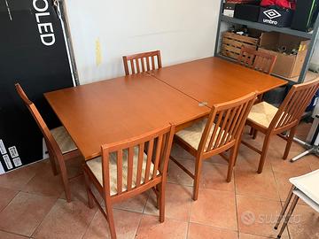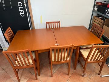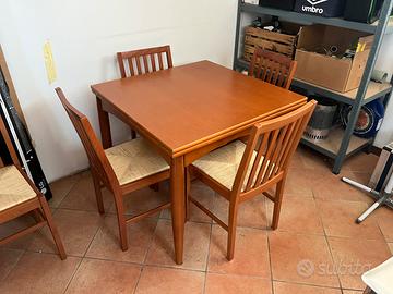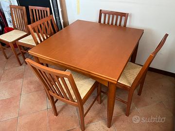 Vendo tavolo da pranzo in legno massiccio e 6 sedie abbinate. Misura 90 x 90 allungabile a 180. Ottime condizioni. Posso provvedere al trasporto.