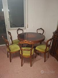 Tavolo e con 6 sedie e credenza in legno intarsiato 450 trattabili vendibili anche singolarmente