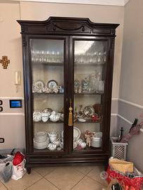 • Mobile importante a due ante vetrate, arricchito da una maestosa cimasa intagliata a festone nella parte superiore.