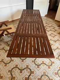 Vendesi per trasloco tavolo allungabile, 1.40m chiuso, fino a 2,60m aperto; legno stile nordico con foro per ombrellone, corredato di 6 sedie/poltrone reclinabili con rispettivi cuscini color crema, tutto utilizzato pochissimo e conservato sempre all’interno dell’abitazione. NO PERDITEMPO NO SPEDIZIONE