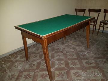 Vendo Tavolo, 6 sedie e tavolino che presumo essere degli anni '40/'50 Il tutto si trova in una casa chiusa da anni. Dimensioni: Tavolo 150x83 h78 Tavolino 67x44 h68 Il tutto in buono stato di conservazione. Sul tavolo manca il cristallo sopra il tappeto verde che originariamente c'era. Trasporto a carico dell'acquirente.