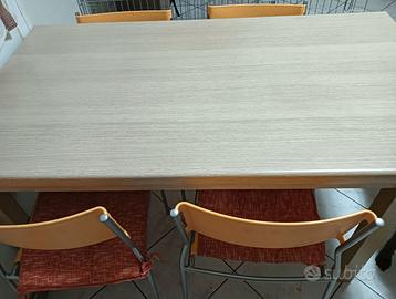 Tavolo 6 posti allungabile in legno più quattro sedie arancioni