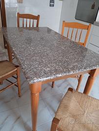 tavolo febal in marmo granito + 4 sedie febal con sedile in paglia.
