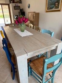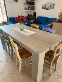 Tavolo fatto a mano, in abete spazzolato completamente legno massello.