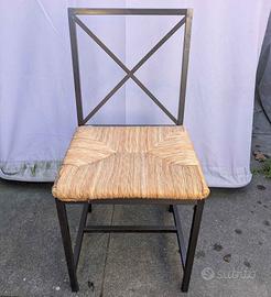 6 Sedie Ikea Granas con struttura in metallo nero e seduta in paglia intrecciata