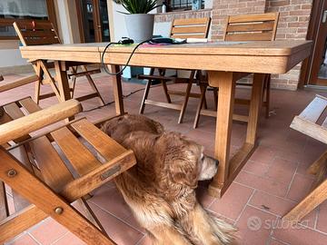 Set tavolo in legno da esterno allungabile con n. 6 sedie con braccioli marchio UNOPIU Misure da chiuso 90x130