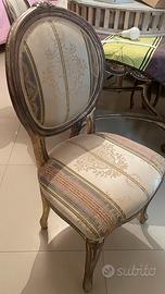 Vendo, causa trasloco, tavolo + quattro sedie interamente in perfette e ottime condizioni sia nel tessuto che nella struttura. Vetro alla base perfettamente integro .