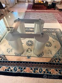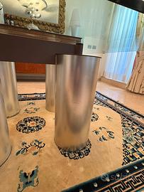 Vendo Tavolo Serenissimo di Acerbis in cristallo usato, con gambe rivestite di foglie d’argento. Misure: cm 140x140. Prezzo di listino oltre €7000