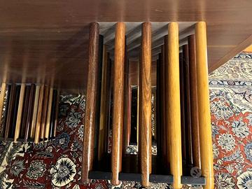 Piano forma quadrata e impiallacciatura in radica.