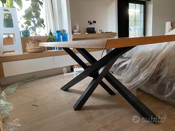 Tavolo in rovere shangai marca Riflessi 6 commensali con gambe incrociate alluminio. Lungehzza 160 cm Larghezza 90 cm Altezza 80 cm PREZZO TRATTABILE