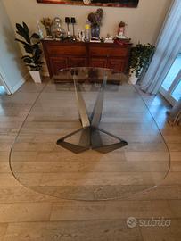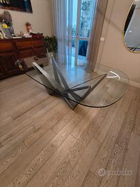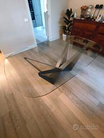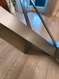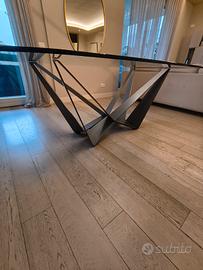 tavolo con base acciaio colori goffrato titanio, piano in cristallo 15mm trasparente con bordi bisellati 200x106 H74 praticamente perfetto