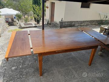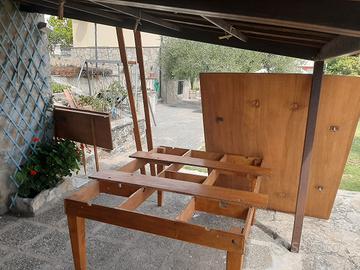 tavolo artigianale in legno, interamente smontabile, dotato di 2 prolunghe; puo ospitare comodamente 10 persone. Usato poche volte.