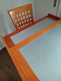 Bellissimo tavolo in ciliegio quadrato 1mx1m, con inserto in vetro temperato, allungabile fino a 2 m, in pendant con 4 sedie.