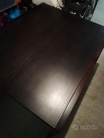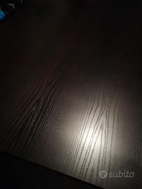 Tavolo da pranzo per soggiorno color wengè, allungabile a libro. Misure tavolo chiuso: 98x120. Misure tavolo allungato: 90x210.