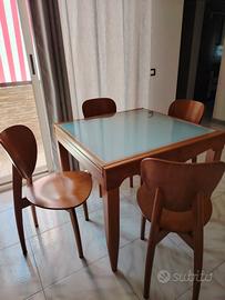 Tavolo da soggiorno o cucina noce chiaro e cristallo temperato misura cm.90x90 allungabile cm.90x180 +4sedie il tutto in eccellenti condizioni marca Calligaris ottimo affare