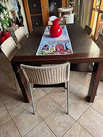tavolo calligaris allungabile 160/240 largo 100 colore wenge con sei sedie wenge e corda buone condizioni rovinato poco sui lati