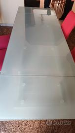 Tavolo soggiorno in ottime condizioni vetro temperato e piedi in ciliegio. Tavolo di qualità.