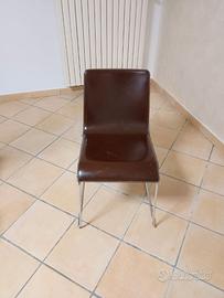 Tavolo da soggiorno o cucina in vetro colore marrone scuro , marca Calligan diametro 120, apribile con 4 sedie di cuoio marrone scuro