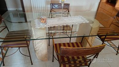 tavolo per soggiorno in vetro per totale posti 8 comprende anche 4 sedia come in foto in ottimo stato trasporto a carico dell' acquirente no perditempo