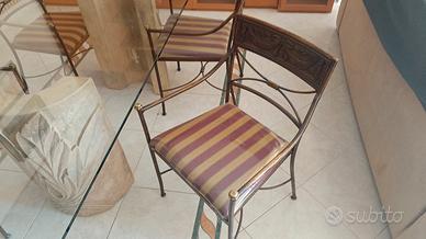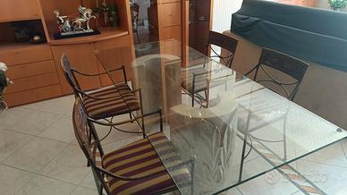 tavolo soggiorno in vetro con 4 sedie in metallo e capitelli in cemento come piedi del tavolo, si puo mangiare benissimo in 8/10 persone si vende per rinnovare il soggiorno a prezzo davvero basso no perditempo visto e piaciuto l'acquirente si dovrà fare carico del trasporto