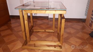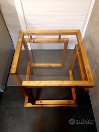 Tavolo soggiorno cubo infinito con cristallo misure 60×60×60 cm fatto in legno massello di abete e incollato con tasselli in legno per irrobustirlo.