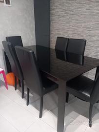 vendo tavolo soggiorno mondo convenienza nero e 6 sedie nere tenuto bene,dimensioni 180cm x 90 cm allungabile a 260cm .300 euro
