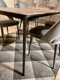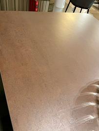 Tavolo con gambe e struttura in alluminio verniciato nero. Top in ceramica color ruggine. Dimensioni L 180/240 x P 90 x H 74.