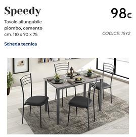 Vendo con urgenza causa trasloco tavolo Speedy allungabile in metallo, colore grigio, con 4 sedie. Perfetto per piccoli spazi.