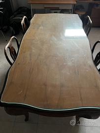 Vendo tavolo in stile antico completo di sedie abbinate. Il set è usato ma in condizioni accettabili, con normali segni del tempo che ne valorizzano il carattere. •Tavolo robusto in legno •Sedie coordinate •Ideale per cucina, sala da pranzo o casa di campagna Perfetto per chi cerca un arredo dal fascino classico a un prezzo conveniente. 📍 Ritiro a mano 💬 Per informazioni o per vederlo dal vivo, contattami in privato.
