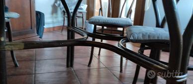 tavolo tondo in rattan e sei sedie in stile thonet. usato circonferenza 120 cm. prezzo trattabile . Non spedisco. Il ritiro a carico dell'acquirente .